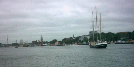 Blick auf das Kieler Westufer, wo ich, nachdem ich schon seit April 2000 dort arbeite, auch seit März 2003 richtig wohne (vorher nur zweiter Wohnsitz zum Schlafen). Und inzwischen fühle ich Landei mich auch wohl hier (wenn nicht gerade nach dem Nachtdienst so lauter Verkehrslärm nervt).